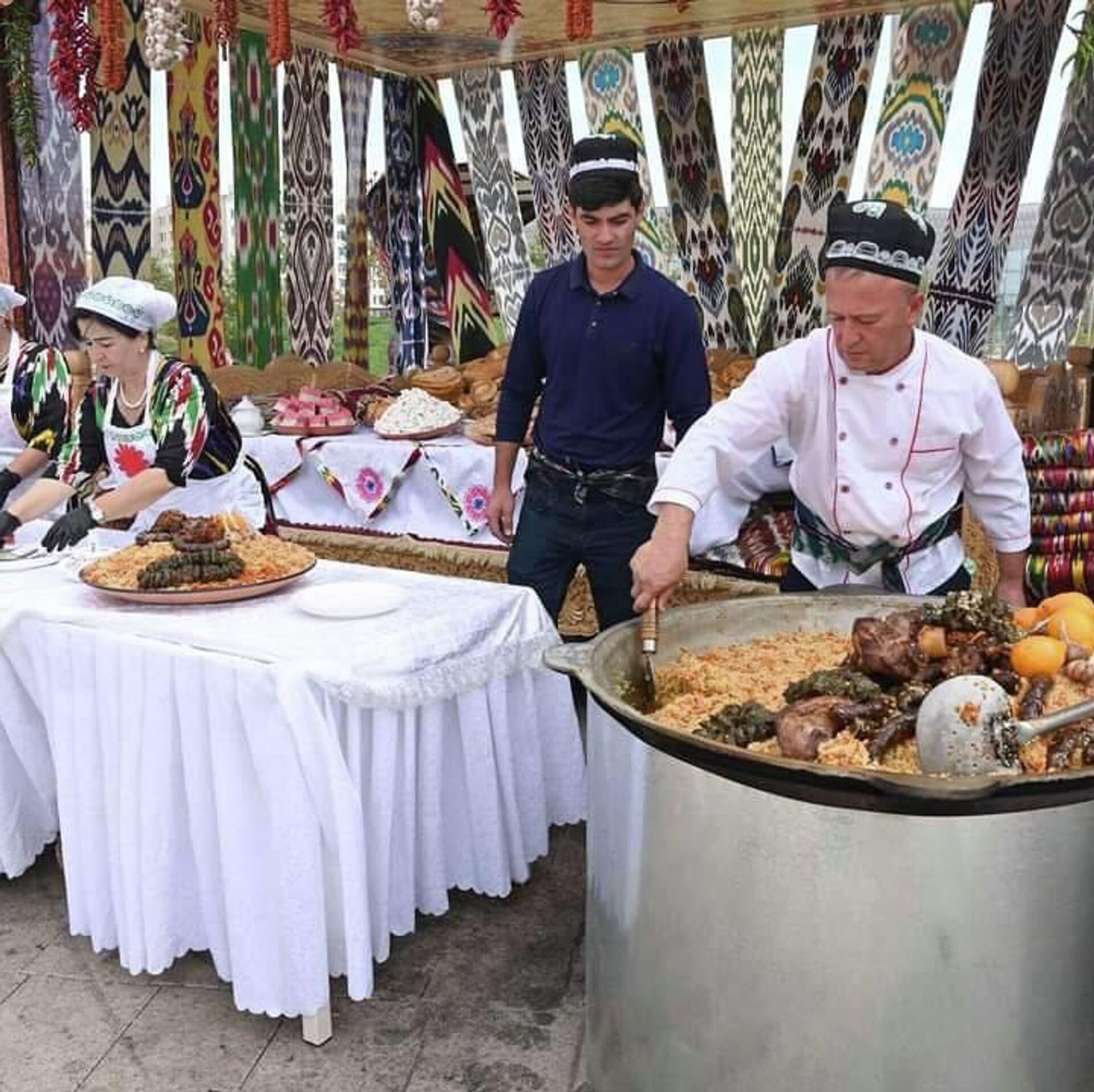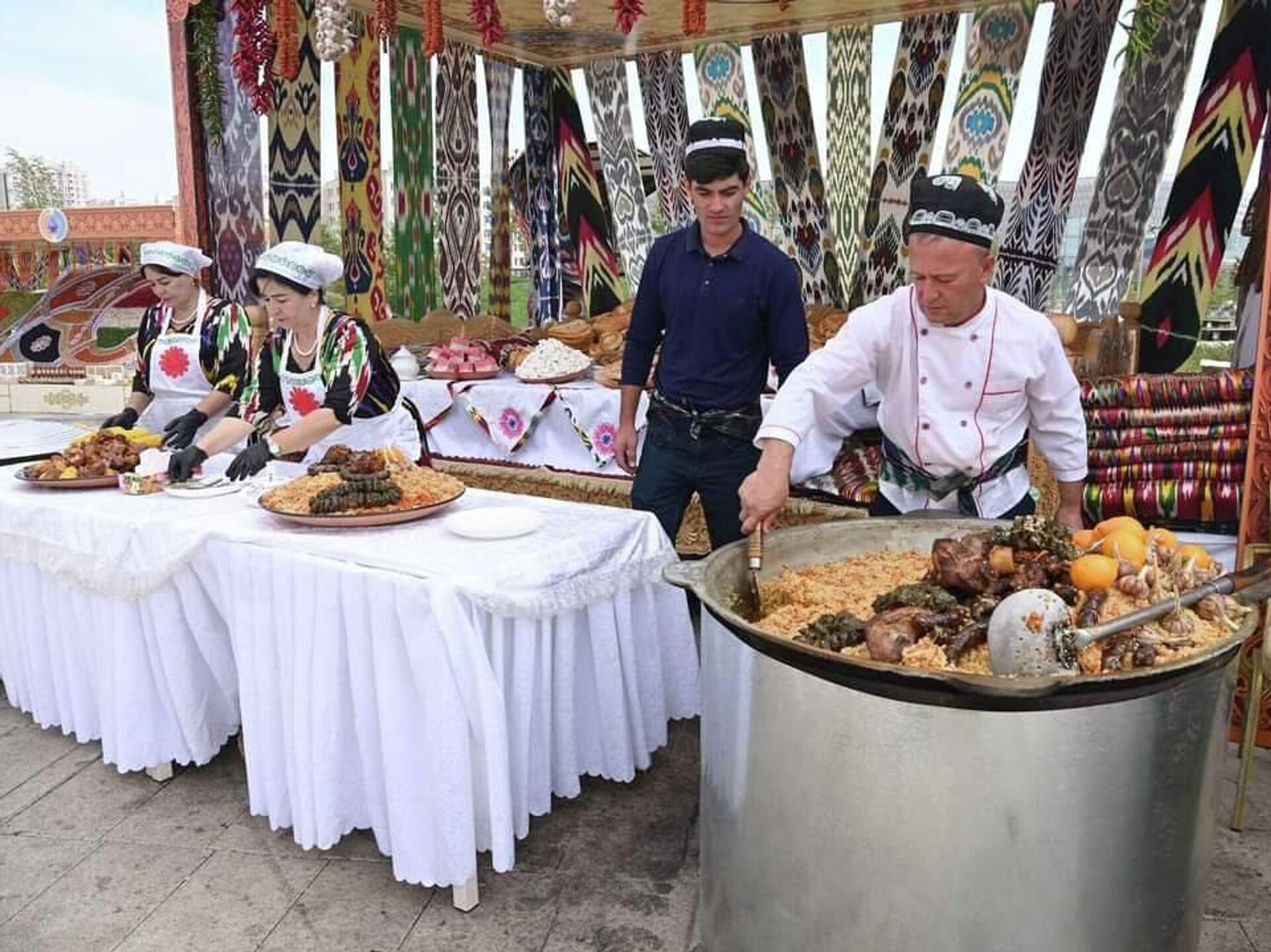 Жители и гости Астаны имеют возможность попробовать национальные блюда, в том числе знаменитый таджикский оши палав, разные виды хлеба и кондитерских изделий
