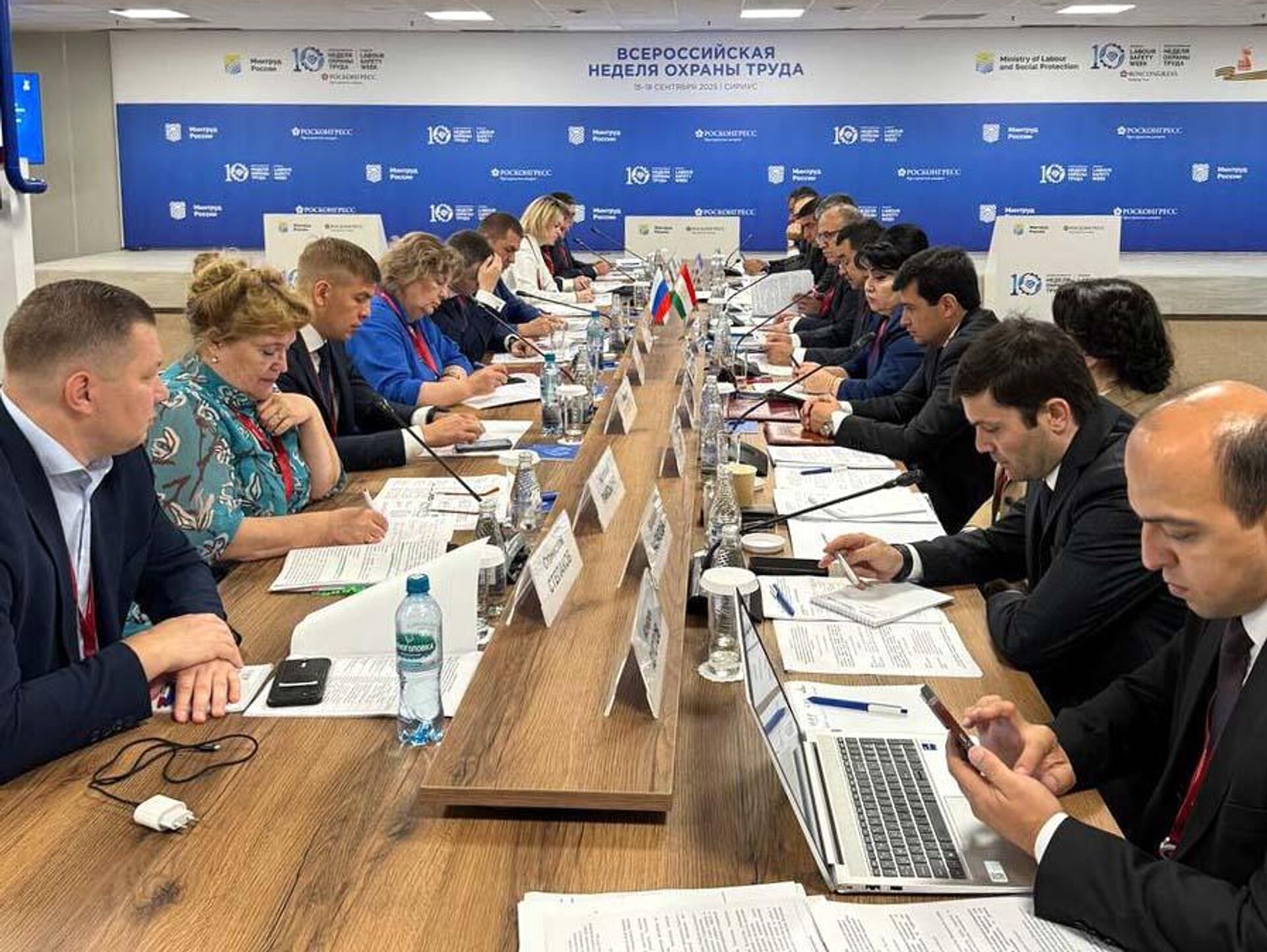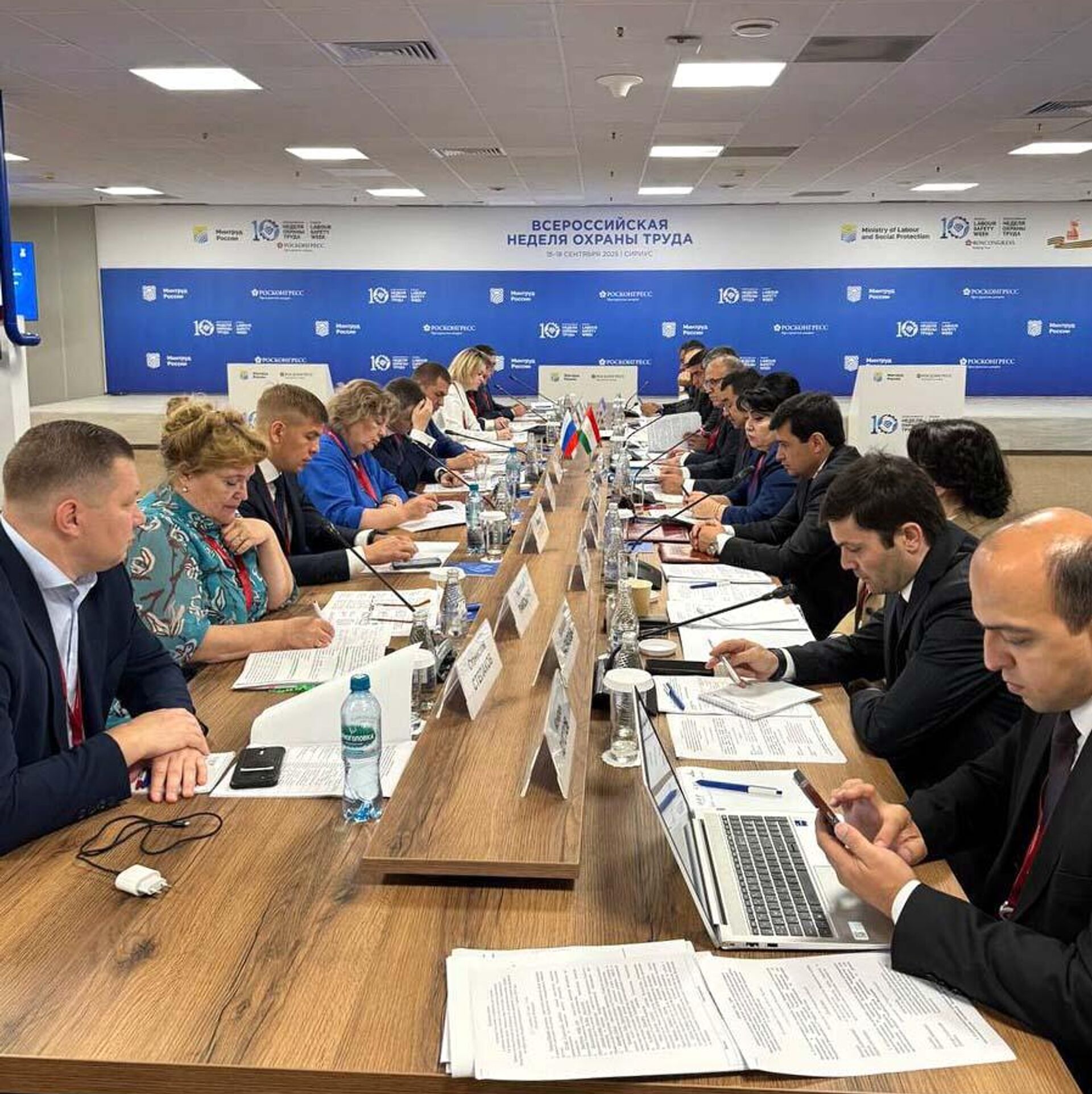 Его провели заместитель министра труда, миграции и занятости населения Таджикистана Шариф Норзода и заместитель начальника Федеральной службы по труду и занятости РФ Денис Васильев.