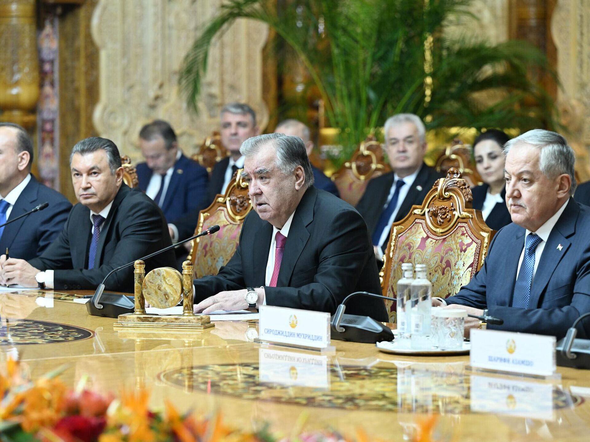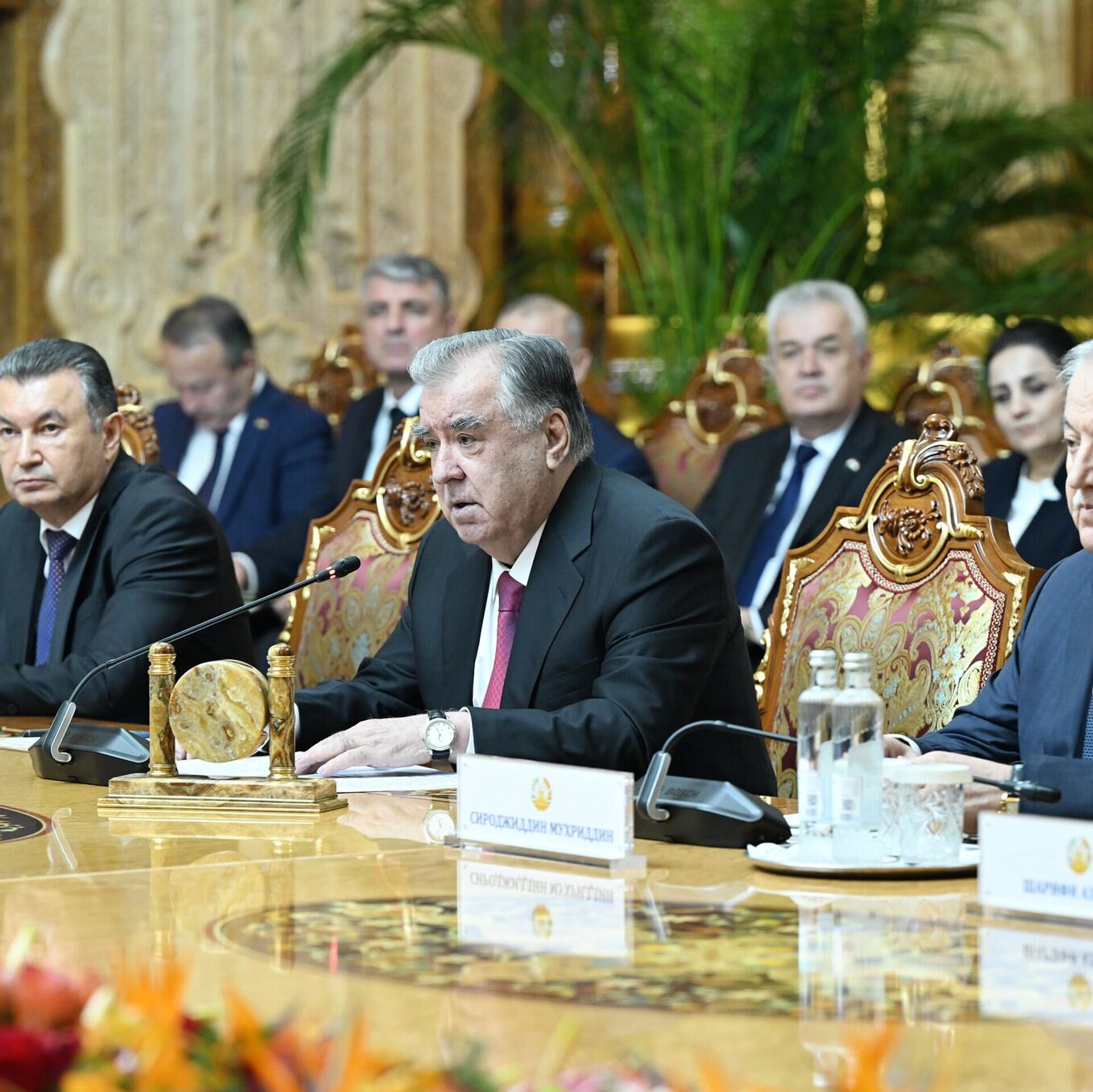 Встреча тет-а-тет между президентами России и Таджикистана Владимиром Путиным и Эмомали Рахмоном прошла во Дворце Нации в Душанбе.