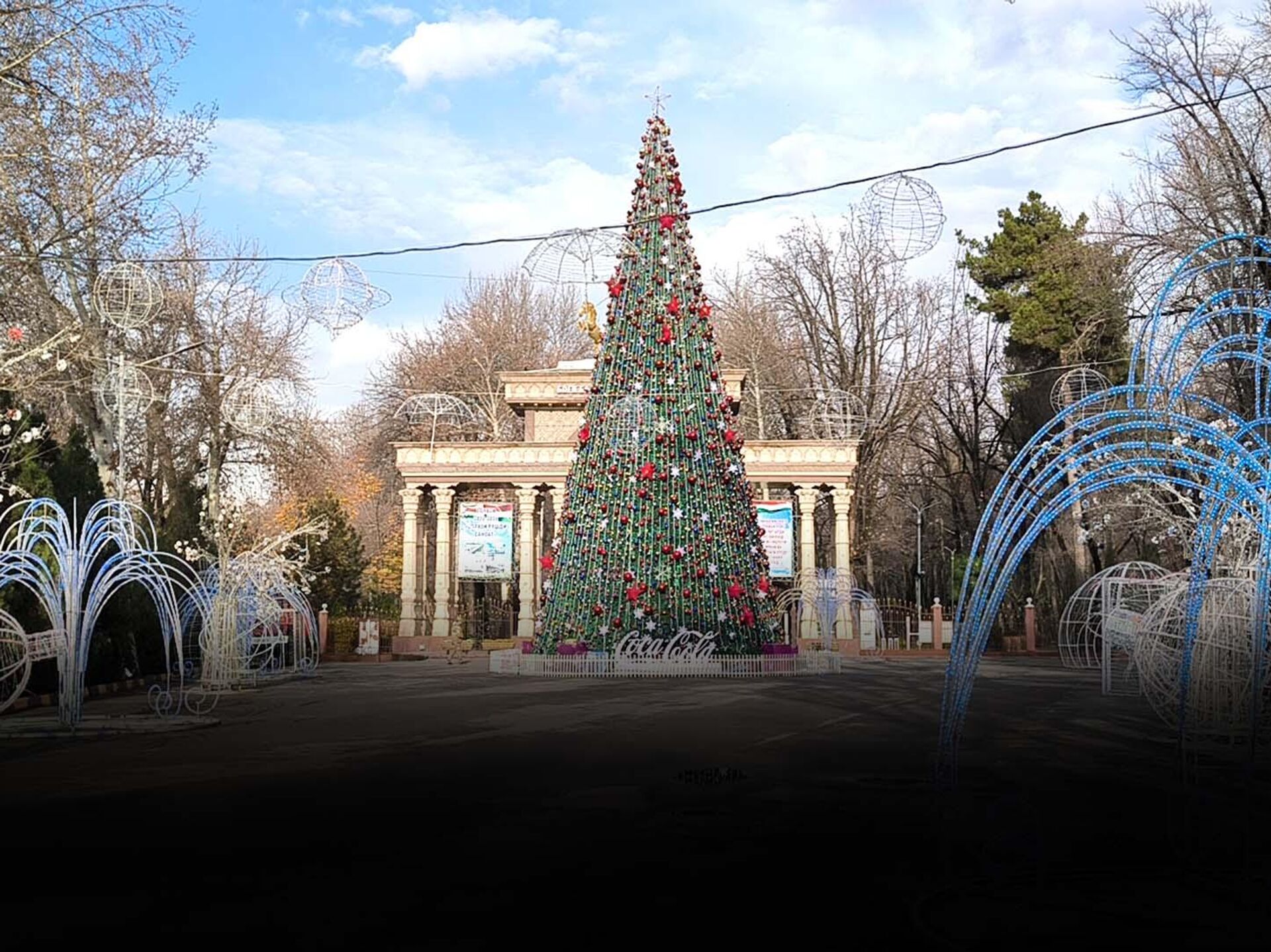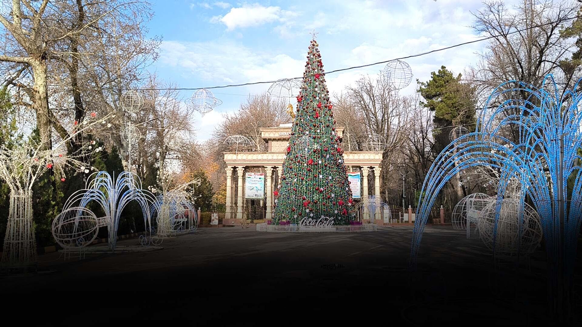 Также установлен главный символ Нового годы - на площади Истиклол уже красуется самая высокая елка, длина которой составляет около 30 метров.