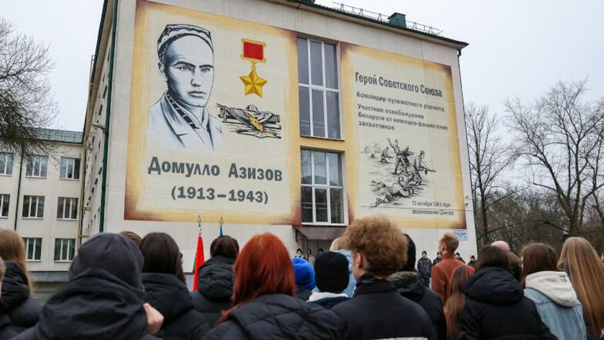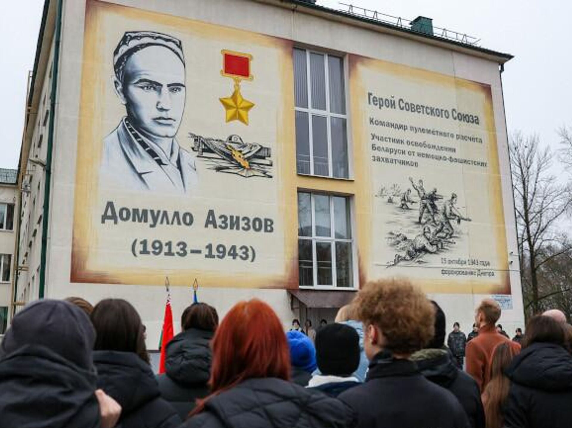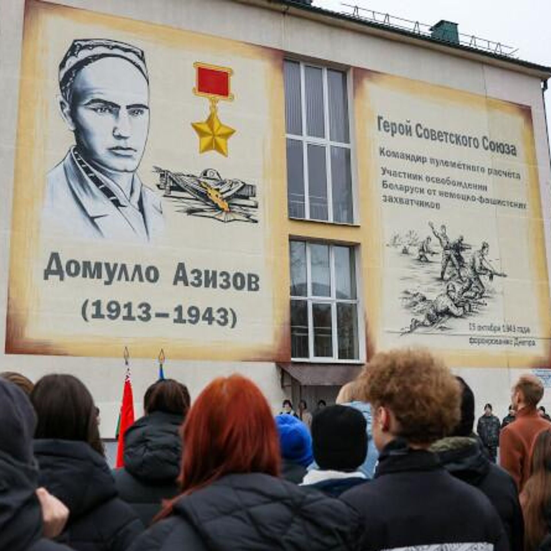 В средней школе №35 Минска состоялось открытие мурала, посвященного Герою Советского Союза Домулло Азизову - уроженцу Таджикистана, одному из тех бойцов, которые освобождали Беларусь. Участники церемонии возложили цветы к мемориальному знаку и почтили память героя.