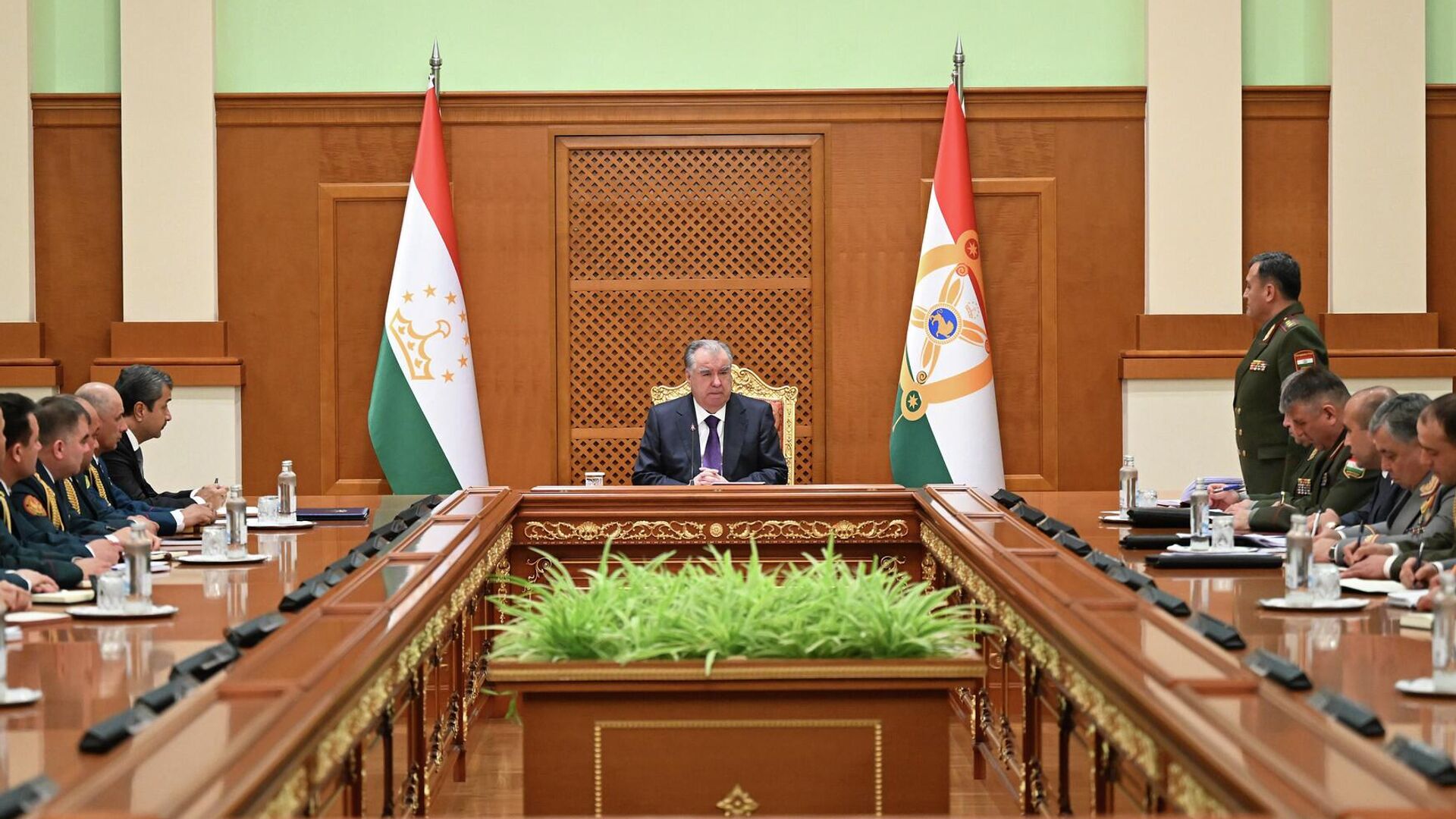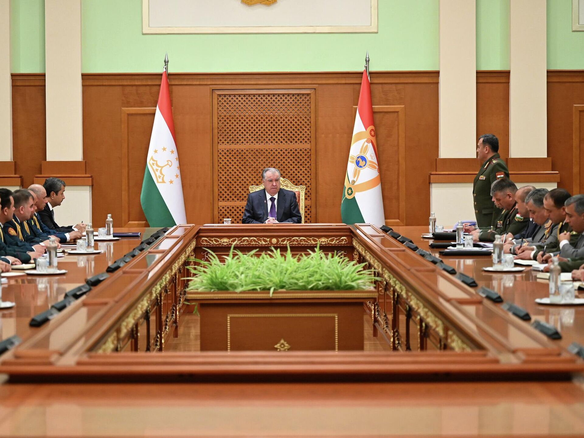 В ходе выступления Эмомали Рахмон также проанализировал и обсудил состояние боеготовности Вооруженных сил, воинских частей и других упомянутых структур в связи с ситуацией в регионе и мире.