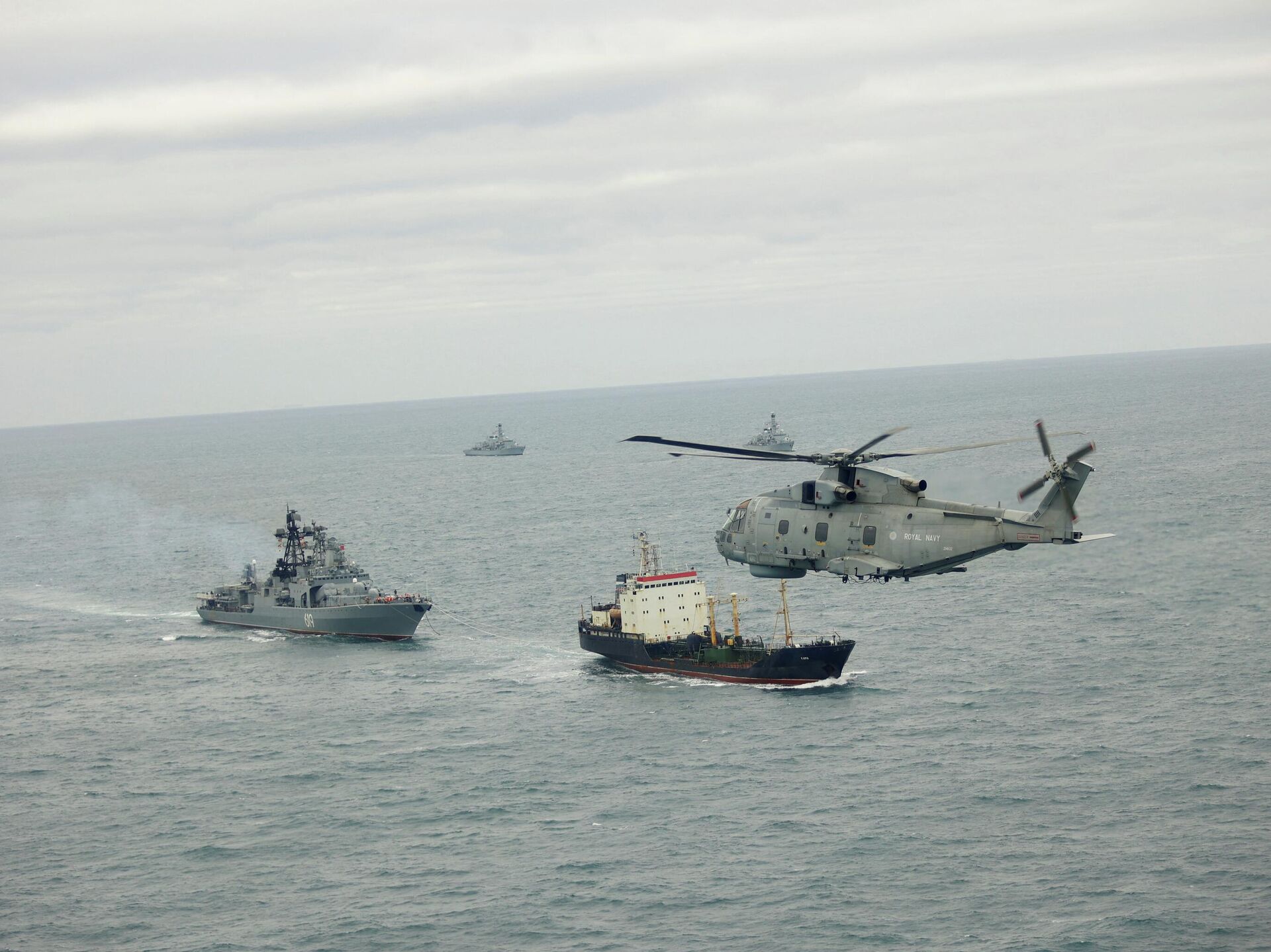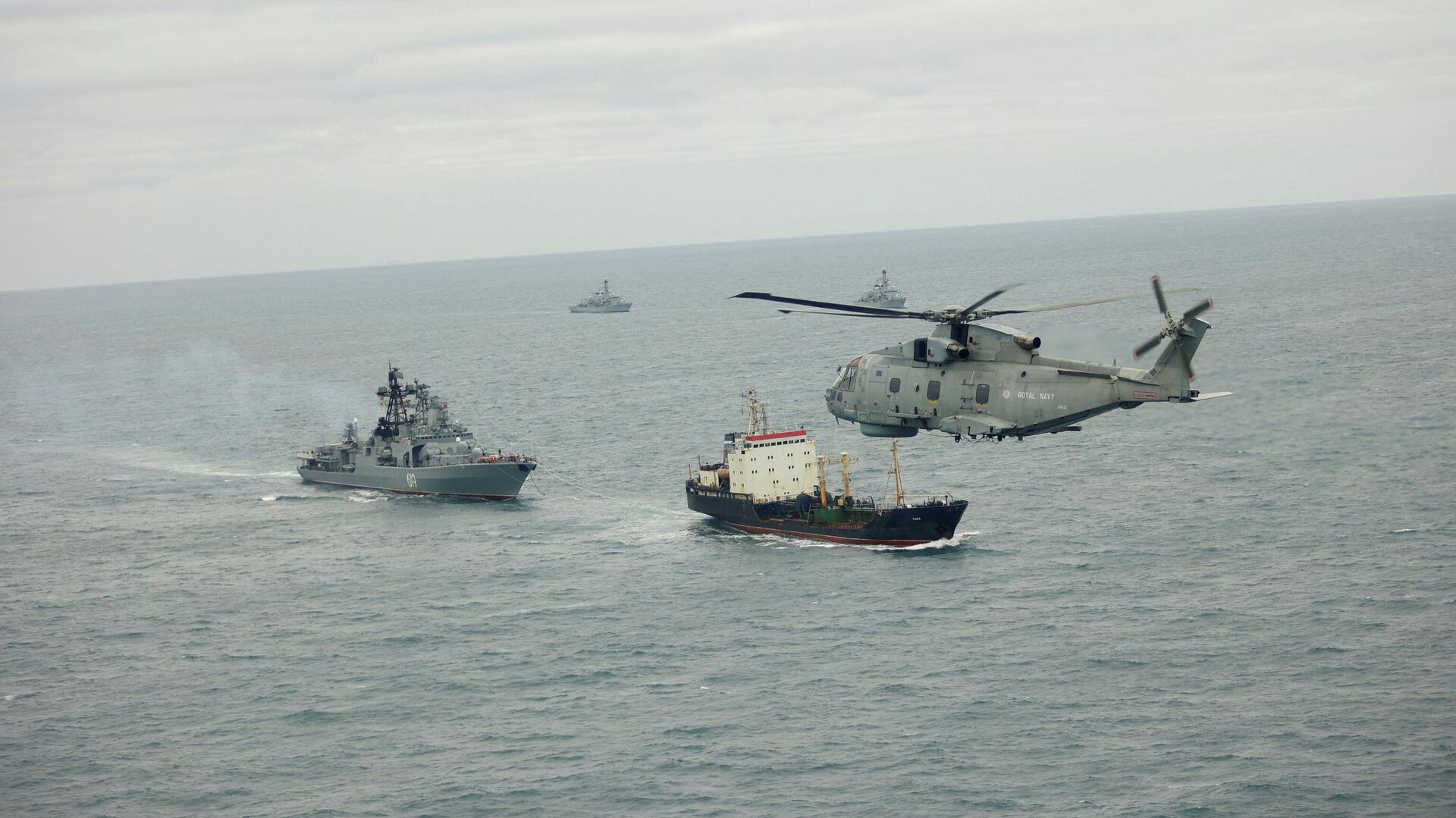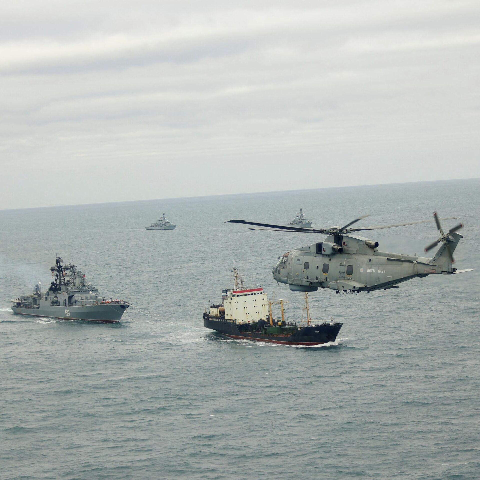 Действительно, боевых кораблей, готовых выйти в море, у британцев так мало, что задачу сопровождения фрегатов потенциального противника в Ла-Манше "обычно поручают почти безоружным тральщикам или патрульным катерам". "Адмирала Григоровича" с крылатыми "Калибрами" на борту сопровождало судно снабжения RFA Tideforce с двумя 30-мм пушками.